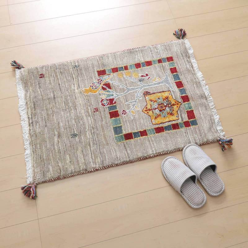 ギャッベルリバフ イラン製 90×61cm 手織り 最高級 天然 ウール100% 草木染 玄関マット おしゃれ かわいい 北欧 ラグ 絨毯 マット ラグマット カーペット 屋内 室内 ギャベ 床暖房対応 ホットカーペット対応 (HSS-71849)