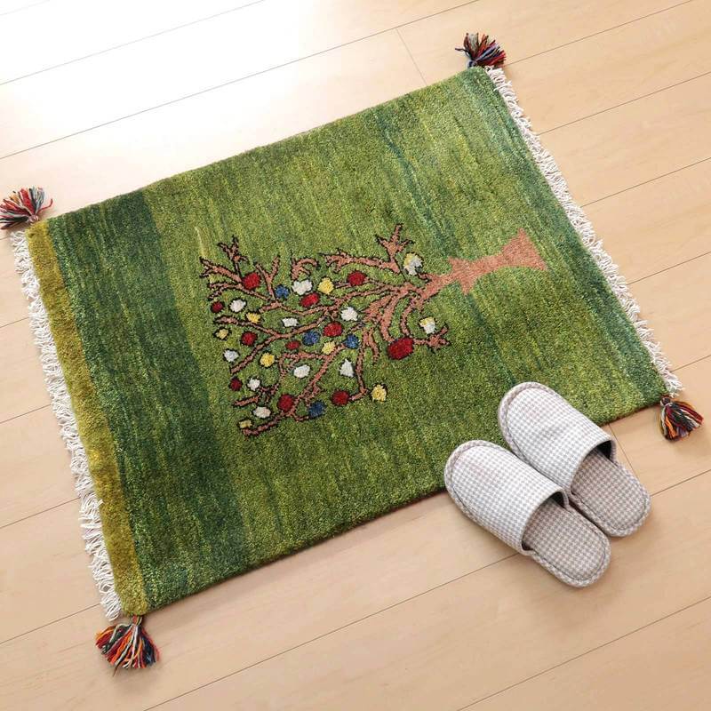 ギャッベカシュクリ イラン製 83×65cm 手織り 最高級 天然 ウール100% 草木染 玄関マット おしゃれ かわいい 北欧 ラグ 絨毯 マット ラグマット カーペット 屋内 室内 ギャベ 床暖房対応 ホットカーペット対応 (HSS-62157)