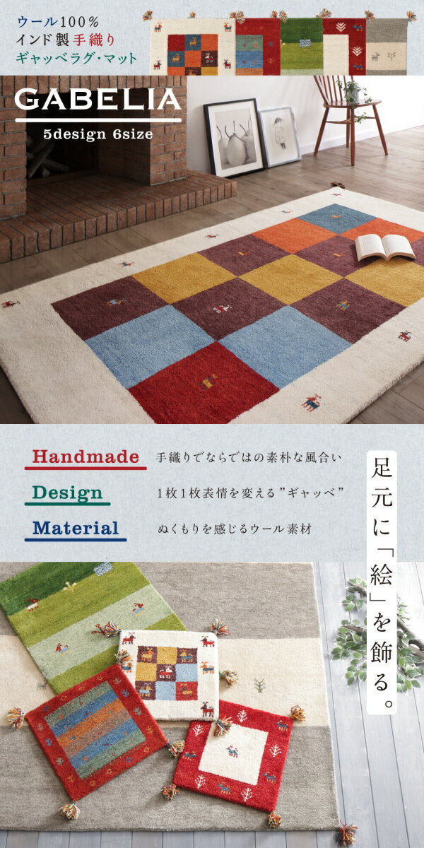 足元に「絵」を飾る ウール100%インド製手織りギャッベラグ・マット【GABELIA】ギャベリア。