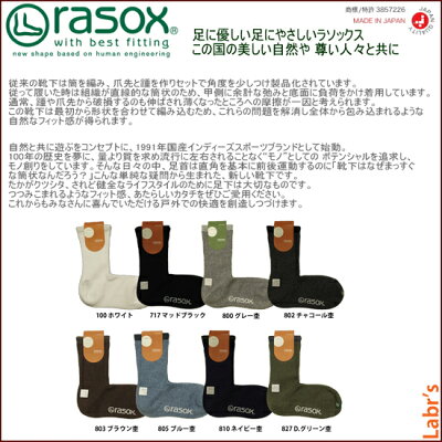 【rasox(ラソックス)】【UNISEX】ベーシック ソックス(靴下)【ネコポス便可】(3足まで!)【送料無料】