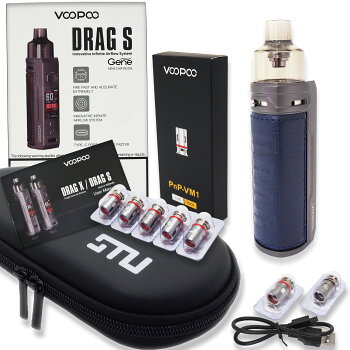 【製品仕様】・サイズ:87*33*28mm ・容量: 4.5ml ・素材: PCTG ・抵抗値: 0.2Ω(PnP-VM5) 0.3Ω(PnP-VM1)・型番: DRAG S ・素材: Alloy+Leather・出力範囲: 5-60W・電圧: 3.2-4.2V・抵抗値範囲: 0.1-3.0Ω・バッテリー容量: 2500mAh 内臓・セット内容:DRAG S Device×1 、DRAG S Pod (4.5ml×1)、PnP-VM1,0.3Ω×1、PnP-VM5,0.2Ω×1、専用コイル