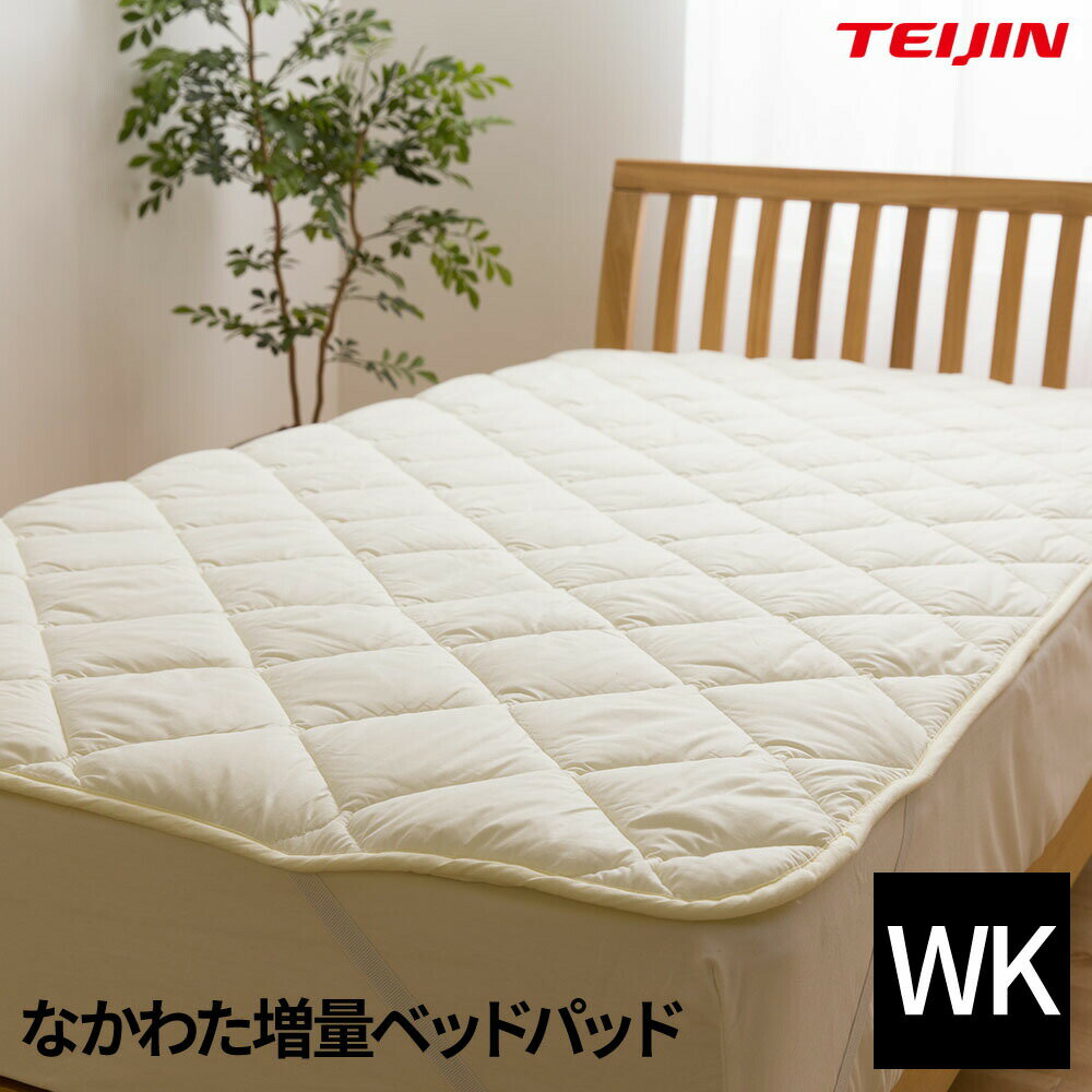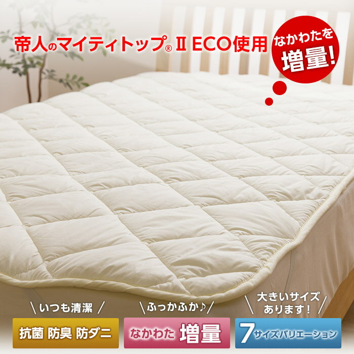 送料無料 日本製 なかわた増量ベッドパッド ワイドキング 敷きパッド 洗える 抗菌 防臭 防ダニ テイジン マイティトップ(R)2 ECO 高機能綿使用 ワイドキングサイズ ベットパット 敷パッド シンプル ウォッシャブル マットレスカバー おしゃれ 北欧 無地 敬老の日
