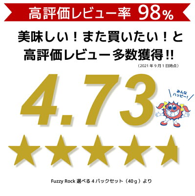 FuzzyRock一覧はこちら 【商品名】Fuzzy Rock (ファジーロック) バブルガム味 【内容量】6袋(1袋あたり40g) 【パッケージサイズ】W120×D40×H129mm 【原産国】イギリス 【原材料名】甘味料(フィンランド産キシリトール99.7%)、香料(レモン、オレンジ、タンジェリン、ライム精油) 【栄養成分表示1袋(40g)当たり】 エネルギー…96kcal タンパク質…0g 炭水化物…40g ナトリウム…0mg(食塩相当量・・・0g) 糖類…0g コレステロール…0g 飽和脂肪酸…0g トランス脂肪酸…0g 脂質…0g ●過剰摂取時、下痢の原因になることがあります。