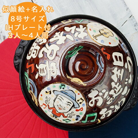 【送料無料 結婚祝い 似顔絵 名入れ オーダー 新築祝い ギフト プレゼント】 似顔絵 土鍋 8号 ガス&IH対応(似顔絵二名様分)(和) | おしゃれ 名前入り 鍋 ギフト 日本製 名入り ih対応 かわいい 結婚記念日 名前入れ 誕生日 引っ越し祝い 入籍祝い 新生活 敬老の日