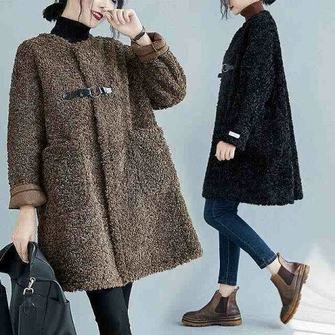 アウター レディース ボアコート ショートコート 襟なし ファーコート コート アウター レディース ジャケット ボア 大きいサイズ 防寒 カジュアル 秋 冬 暖かい ふわふわ もこもこ 無地 長袖 ノーカラー ミドル丈 かわ大