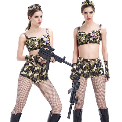 セクシー 迷彩服 コスプレ ミリタリー 軍服 制服 迷彩柄 アーミー カモフラ レディース コスチューム 可愛い スワット 服 サバゲー 服装 ウェア 女 ハロウィン 衣装 仮装 ホットパンツ 短パン ノースリーブ へそ出し 全身 一式 セット 大人用 警察 ポリス レディース(T)