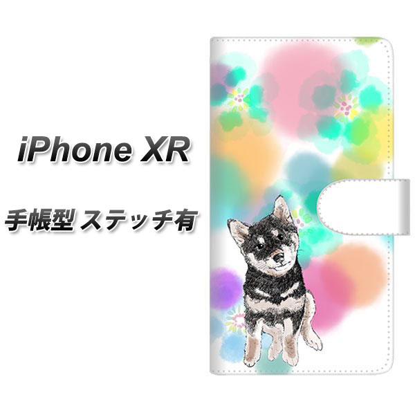 Apple iPhone XR 手帳型 スマホケース カバー 【ステッチタイプ】【YJ223 黒 柴犬 イヌ いぬ 水玉 かわいい】