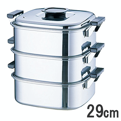 ◎≪IH・ガス火対応≫桃印 18-0ステンレス 角型蒸し器 3段 29cm 2.4升用 025000370,552-09_ET 二重 角蒸し器 電磁調理器