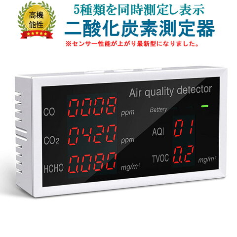 【9/1一日限定ワンダフルデー11倍】二酸化炭素濃度測定器 NDIR方式 CO2 センサー 二酸化炭素濃度計 測定器 CO2濃度測定器 警報アラーム 3000mAh大容量 充電式 卓上型 コンパクト CO2メーター 高精度 濃度測定 リアルタイム監視 温度/湿度測定機能付き
