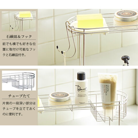 特徴・石鹸皿付き!・さびに強く清潔なステンレス製・チューブや小物も収納できます! ・小物が掛けられる 便利なフック付き サイズ(約) 幅40.8×奥行き12.4×高さ70.0cm(フックは含まず) 材 質 本体=ステンレス、石けん皿=ポリプロピレン キャップ=ポリエチレン 吸盤=塩ビ 耐荷重 上段2kg 中・下段4kg フック300g 原産国 中国 このカテゴリの商品一覧はこちら▶【バスカウンター】 バスカウンター1段 バスカウンター2段 バスカウンター3段 シャンプーラック3段 【シャワーラック】 1段 2段 3段