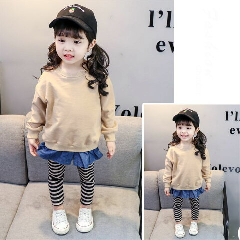送料無料 セットアップ 上下セット キッズ ベビー トップス ボトムス トレーナー 長袖 フェイクレイヤード レギンス ロング丈 ボーダー
