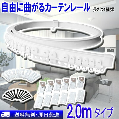 【9月11日01:59まで楽天SS限定価格!!特別クーポン配布中】自由に曲がるカーテンレール(2.0mタイプ)出窓や天井、トラックにも取付可能 カーブレール コーナーレール まがる 部品は全て同梱済み 長さは4種類(2m 3m 4m 5m) 壁付け・天井付けに対応 出窓 間仕切り シングル
