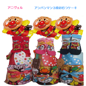 アンパンマン【出産祝い】240【おむつケーキ 3段】送料無料 名入れ無料 即日発送 オムツケーキ
